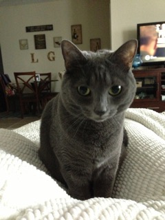 Cream is such a loving cat. She is sweet and a bit shy, gentle and loves to purr and play. She is very pretty, with velvety-soft gray fur, and the most gorgeous, expressive eyes. She has a very melodious meow, and a purr that melts your heart. Like her name, Creme is “smooth”!