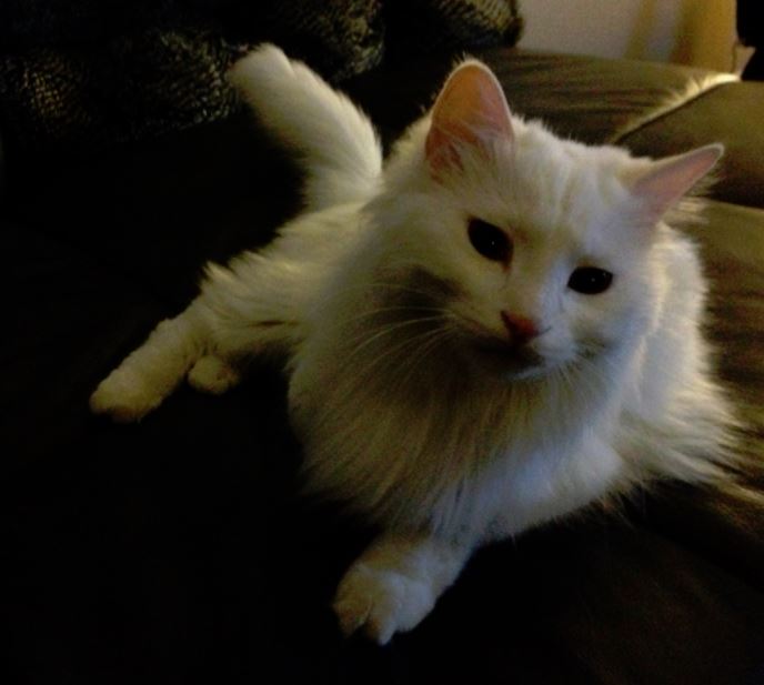 Xiao Bai is a sweet, adorable, and intelligent female Turkish Angora looking for a new home. Snow white fur that is soft to the touch. Very affectionate and loves to lay in your lap and falls asleep like an angel. When you come home, she will lay on her back and shower you with sweet meows because she misses you.