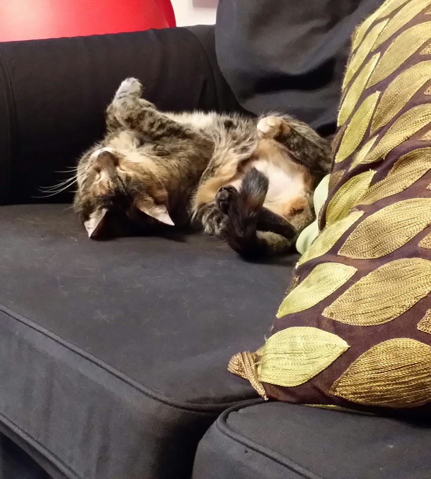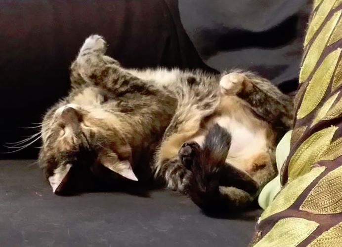When you are hurting, Walter and Peyton are your saviors. Each in their own way, they come over to help heal you. Peyton likes to sleep behind your legs while you curl up to sleep. She puts her paw gently on your arm to ask for love. She is a sweet girl.
